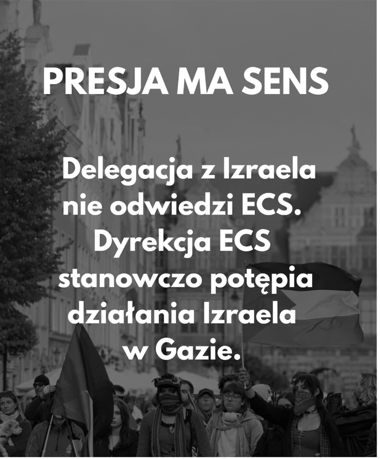 "Kilka faktów dla organizatorów tej presji: 1. Organizatorem delegacji NIE jest rząd Izraela, a rząd Polski – a konkretnie Polish Institute Tel Aviv, który jest placówką polskiego MSZ. 2. Ta mała delegacja to naukowcy z Izraela: Żydzi i Palestynki – tak, w jednej delegacji; 3. Przyjechali razem, ponieważ budują mosty. W Polsce uczą się edukacji ekologicznej i budowania community poprzez wspólne dbanie o środowisko; 4. W delegacji są dwie Palestynki, aktywistki, bardzo chciały zobaczyć ECS – dzięki waszej presji, nie zobaczą; 5. Tych kilku naukowców było bardzo podekscytowanych wizyta w ECS – chcieli zobaczyć, jak Polska, mimo podziałów, zdołała zbudować wspólne państwo; 6. Uniemożliwiliście im to. Nie dajecie przyzwolenia na budowanie mostów".