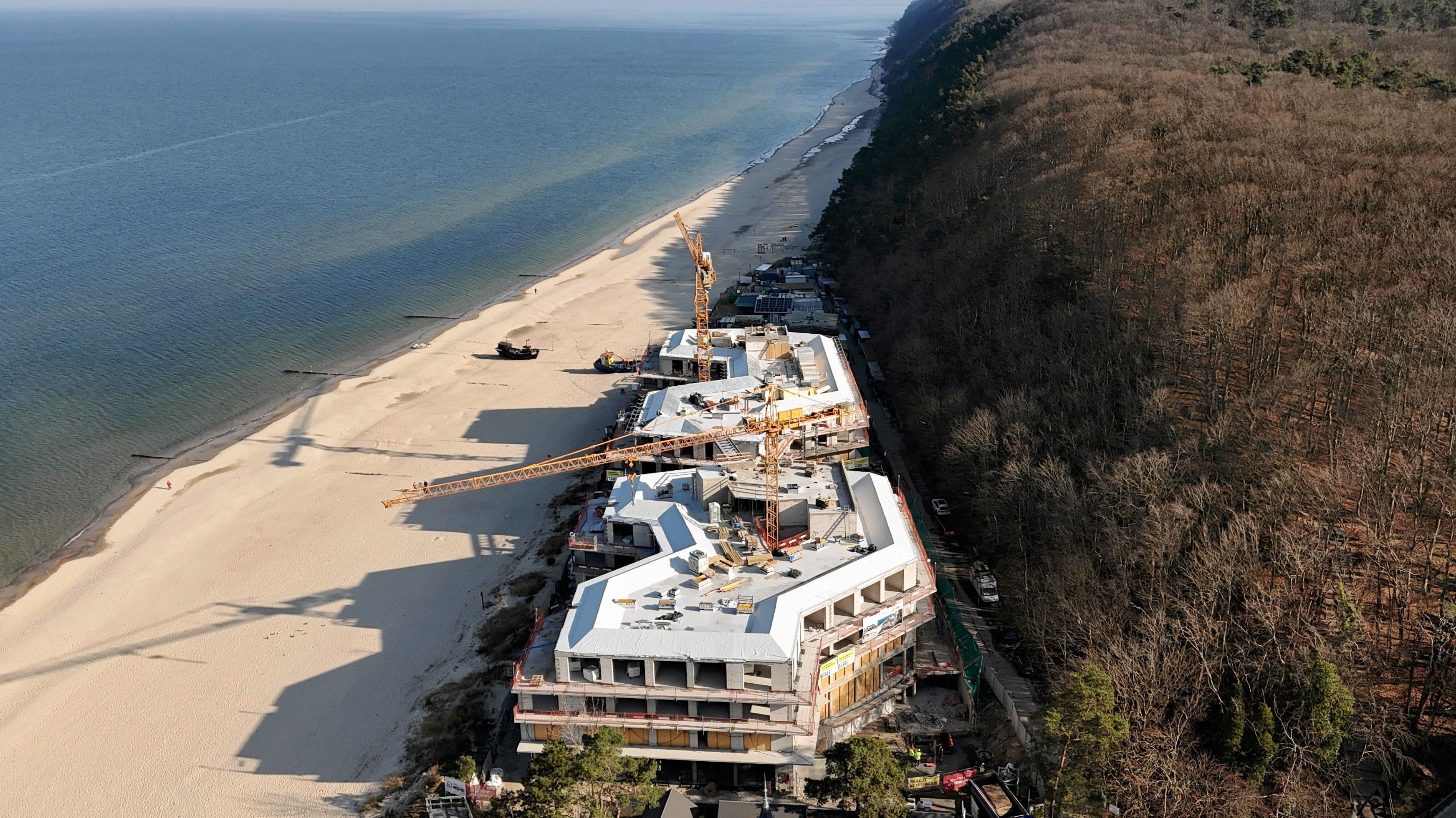 Widać to na przykład w Międzyzdrojach. W lutym 2025 roku głośno było o Apartamentowcu The Sea Resort, powstającym tuż przy plaży (na zdjęciu). Inwestor tłumaczył się w mediach, że: „planowana inwestycja nie zagraża w żaden sposób zasobom naturalnym wybrzeża Międzyzdrojów. Zlokalizowana jest na zdewastowanym przyrodniczo terenie poprzemysłowym”. Wyjaśniał również, że uzyskał wszelkie niezbędne zgody.