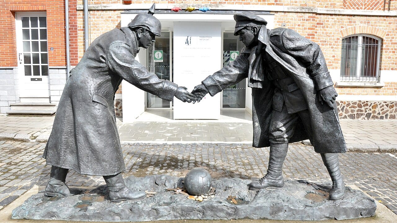 Na zdjęciu: Pomnik upamiętniający rozejm bożonarodzeniowy w Mesen w Belgii, fot. w domenie publicznej
