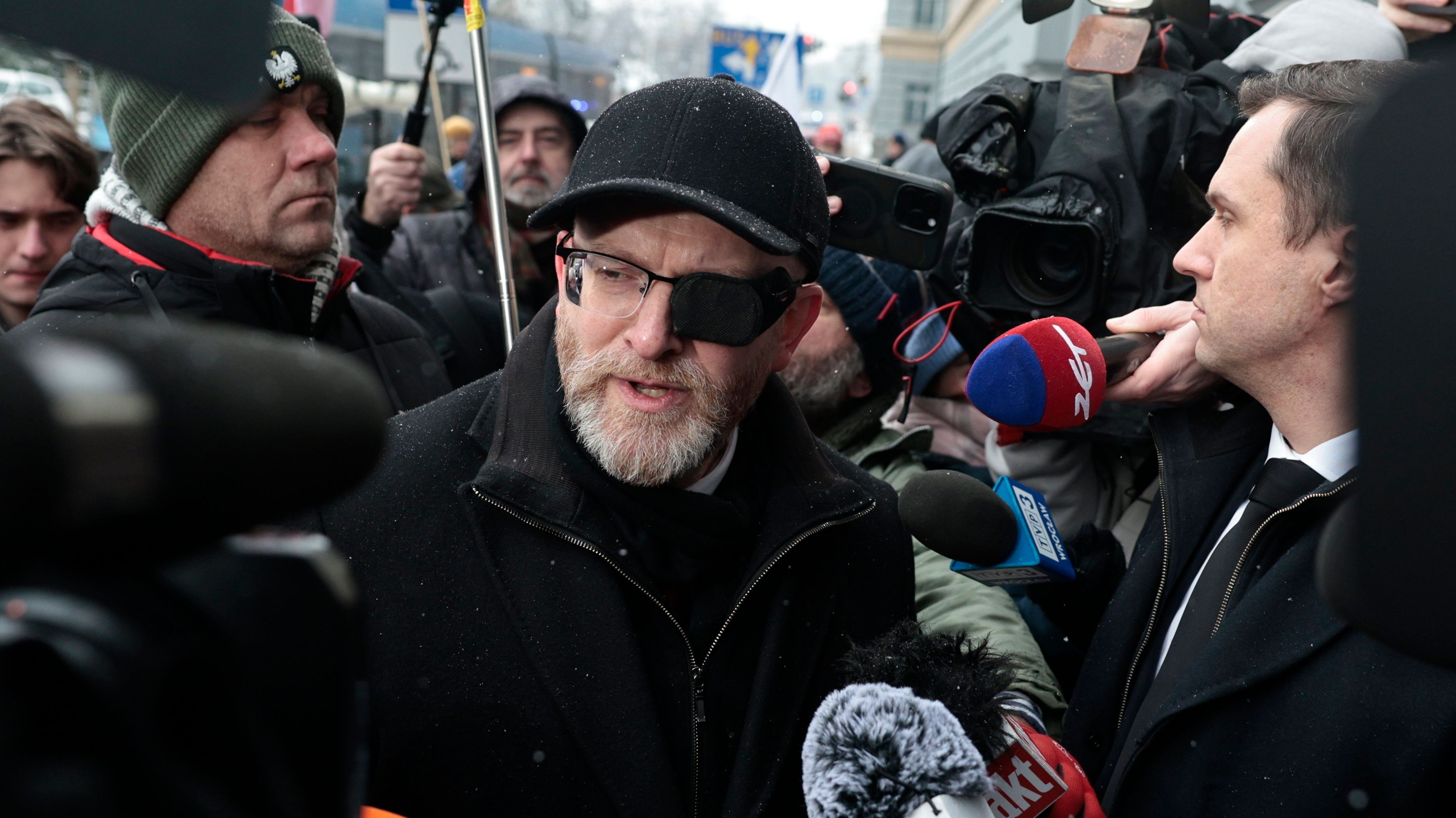 Natomiast Grzegorz Braun ma rozpoczęty proces karny oraz dwa postępowania karne w toku. Wszystkie sprawy dotyczą jego działalności politycznej, w tym incydentu w Sejmie, w czasie którego polityk gaśnicą zgasił chanukowe świeczniki, naruszenia nietykalności cielesnej co najmniej dwóch osób oraz głoszenia tzw. kłamstwa oświęcimskiego.