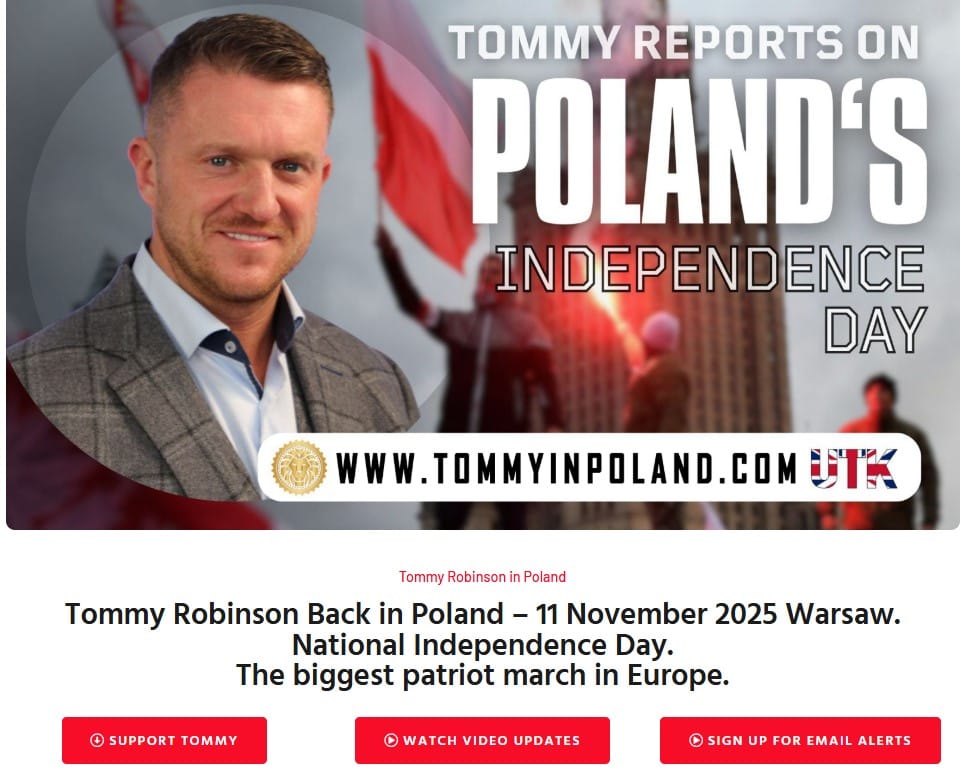 „Tommy został osobiście zaproszony przez polskiego europosła Dominika Tarczyńskiego, człowieka, który powiedział przed całym Parlamentem Europejskim: „Polska nie da się szantażować!”. Podczas gdy globalista Donald Tusk próbuje sprzedać Polskę,