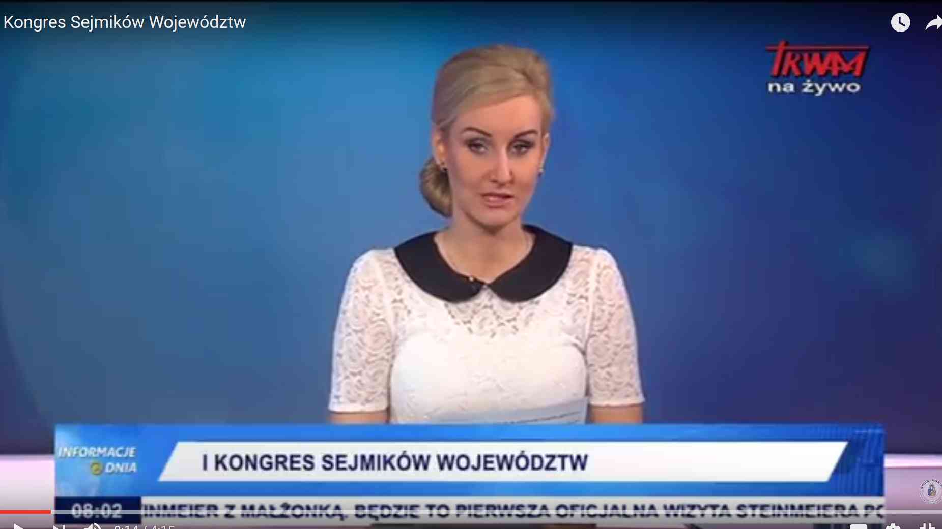 Tymczasem w relacji z Sejmiku Sejmików w Telewizji Trwam widzimy wchodzącą na salę obrad premier Beatę Szydło. Wchodzi, pierwszy rząd wstaje z krzeseł, wita się, a lektor w tle czyta: „Podczas spotkania rozmawiano o fundamentalnych sprawach m.in.: o zasadzie pomocniczości, solidarności samorządności, samostanowieniu lokalnych i regionalnych samorządów o sobie. Dyskutowano też o ustawie dotyczącej metropolii warszawskiej, propozycji podziału województw na nowe regiony i ograniczeniu kadencji prezydentów, wójtów i burmistrzów”.