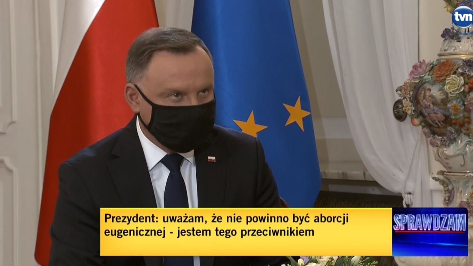Prezydent Andrzej Duda był gościem programu "Sprawdzam" stacji TVN24. Prowadzący program Krzysztof Skórzyński pytał m.in. o elekcję Joego Bidena i akcję szczepień przeciwko COVID-19. Pod sam koniec rozmowy dziennikarz zapytał prezydenta, jak ocenia działania funkcjonariuszy wobec protestujących, m.in. przeciwko decyzji TK Julii Przyłębskiej.