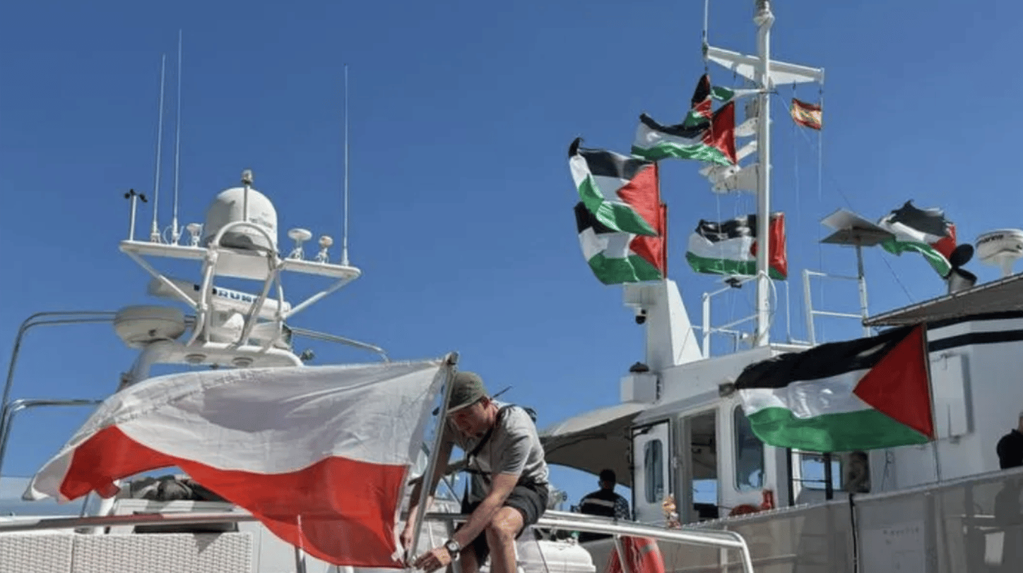 *Poza Sterczewskim do końca w rejsie uczestniczyli: Omar Faris, prezes Stowarzyszenia Społeczno-Kulturalnego Palestyńczyków Polskich, Nina Ptak, przedstawicielka Polsko-Palestyńskiej Inicjatywy na Rzecz Sprawiedliwości „KAKTUS” oraz dziennikarka i aktywistka Ewa Jasiewicz