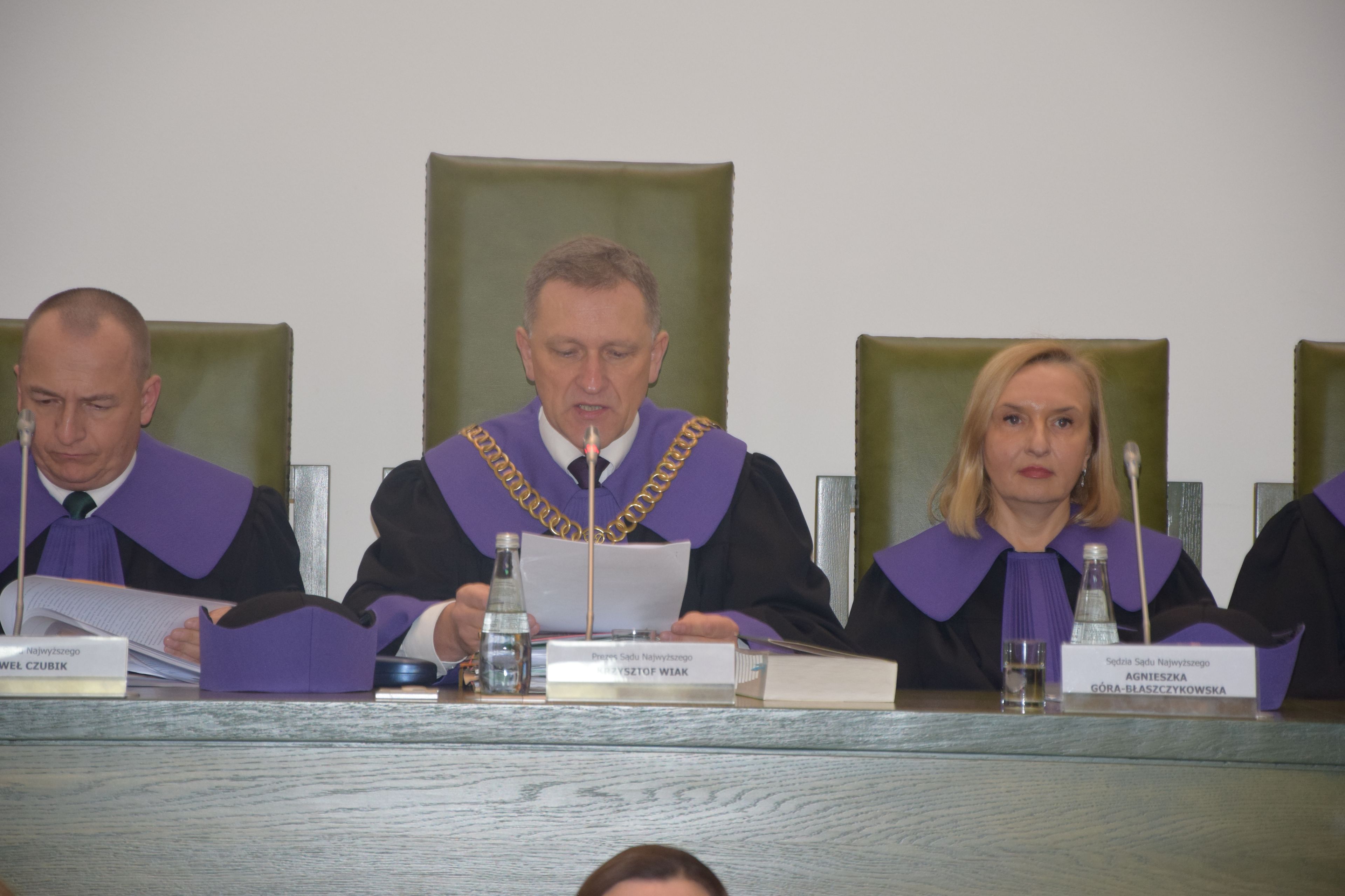 Z Izby Kontroli za stołem sędziowskim w reprezentacyjnej sali A Sądu Najwyższego zasiedli neo-sędziowie: