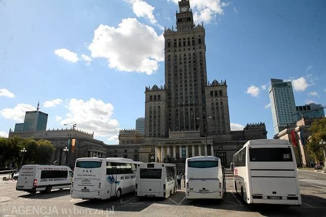 Przed dawnymi Domami Centrum nadal jest parking dla prywatnych autobusów. W samym centrum stolicy! Czy zniknie po remoncie ulicy?