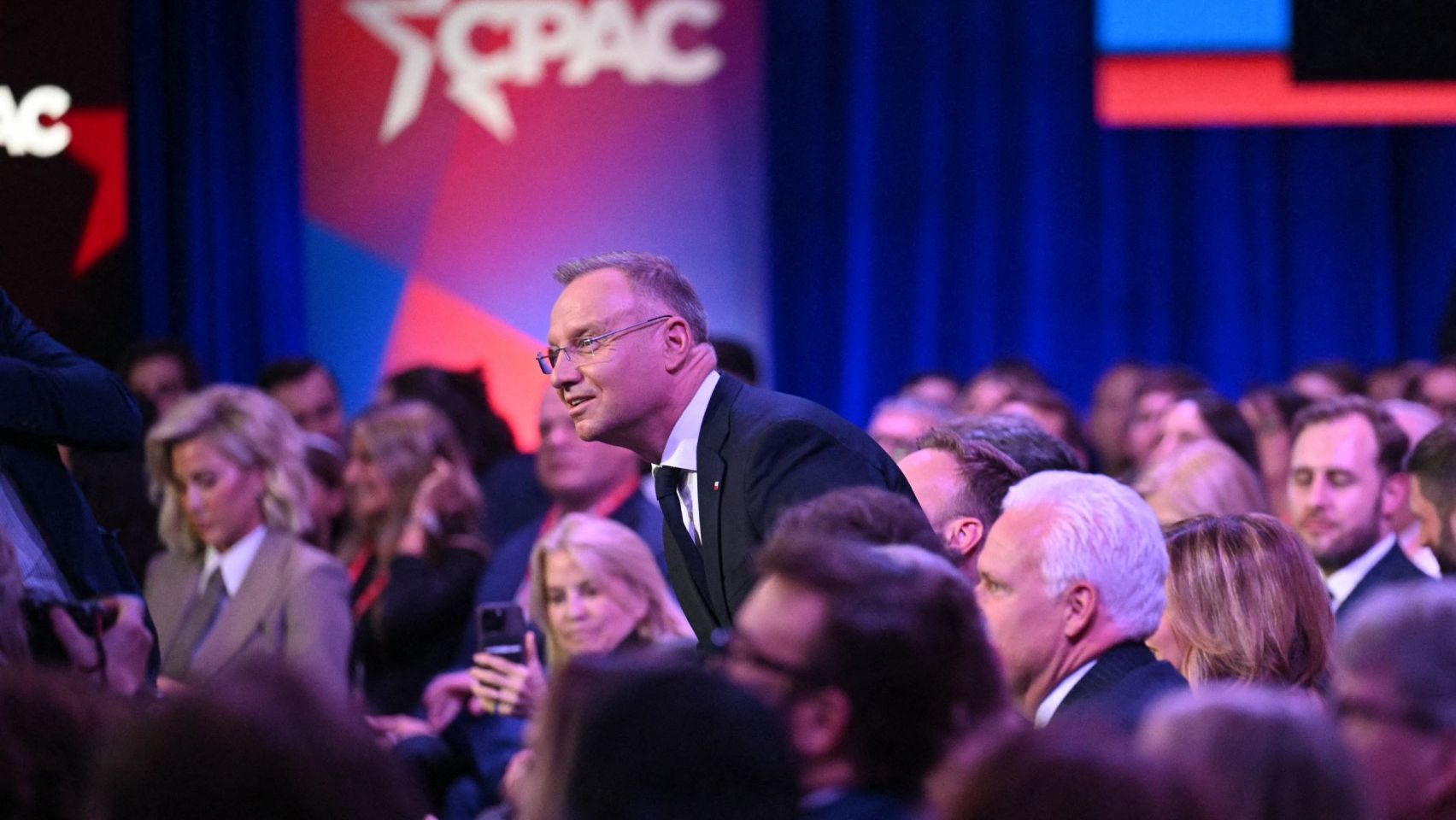 Na zdjęciu: Andrzej Duda na konwencji CPAC w Oxon Hill w USA, podczas przemówienia Donalda Trumpa, 22.02.2025 r. Foto Alex WROBLEWSKI / AFP