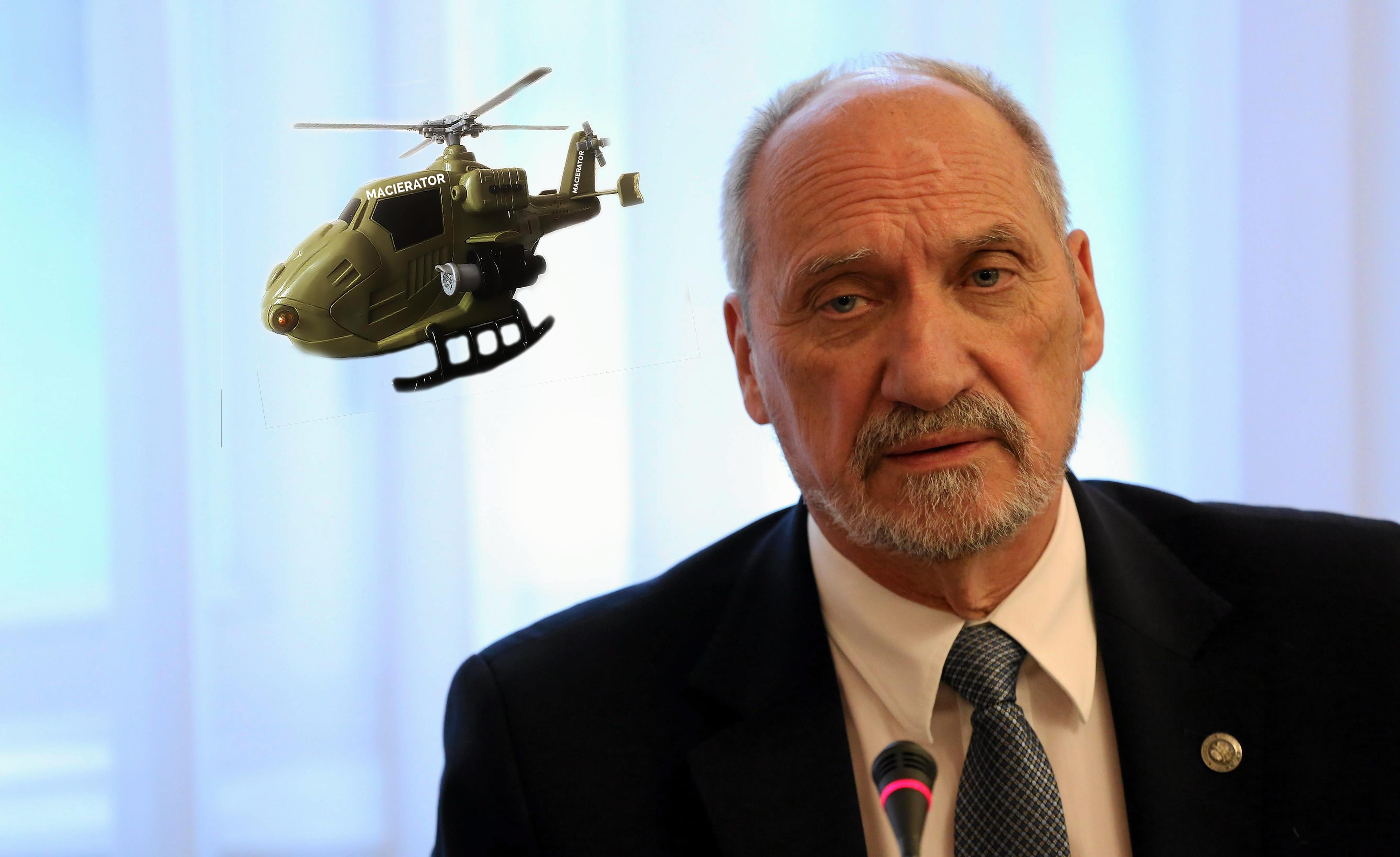 Autorów (i autorki) prosimy o kontakt z redakcją. Nagrody - wśród nich śmigłowiec widoczny na zdjęciu - wyślemy pocztą. Gratulujemy także ministrowi Macierewiczowi! Helikoptery „Macierator” na pewno będą siały popłoch w szeregach wroga. Na sam dźwięk tej nazwy Władimir Putin abdykuje i uda się na dożywotnie wygnanie na Wyspy Sołowieckie.