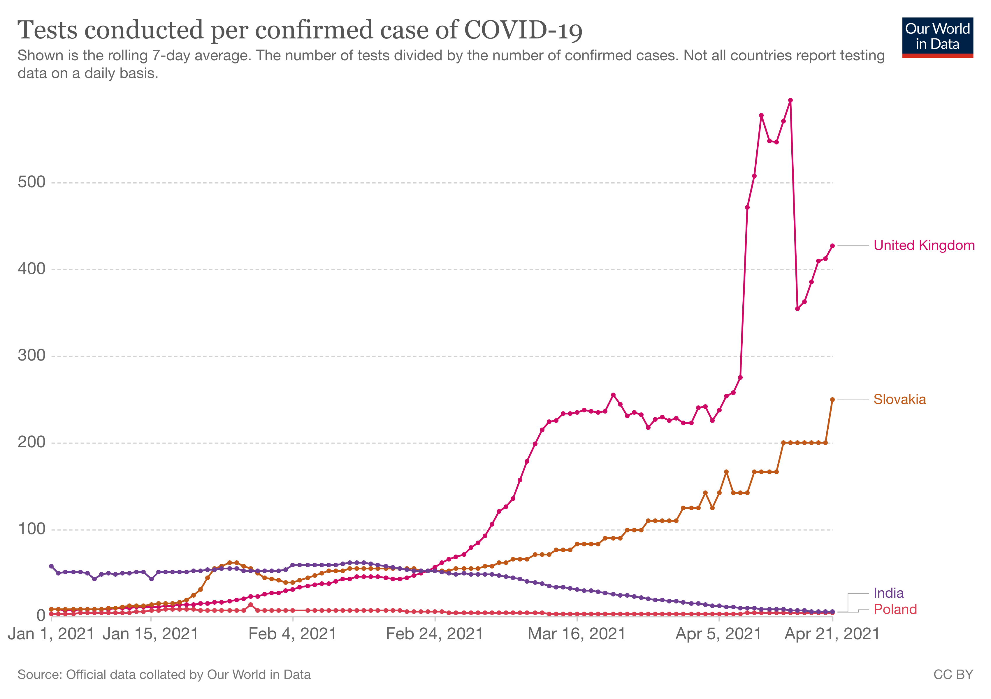 I eksperci są zgodni, że rzeczywista liczba zakażeń jest wielokrotnie większa. Indie testują mało i wybiórczo – przede wszystkim w bogatszych stanach. W tej chwili liczba wykonanych testów na jeden potwierdzony przypadek SARS-CoV-2 to 5,6, czyli mniej więcej tyle, co w Polsce: 5,3. A w Polsce testujemy przede wszystkim osoby z objawami koronawirusa i jesteśmy na dole europejskiej stawki, jeśli chodzi o liczbę wykonanych testów na milion mieszkańców. Oznacza to, że większość zakażeń pozostaje niewykrytych.