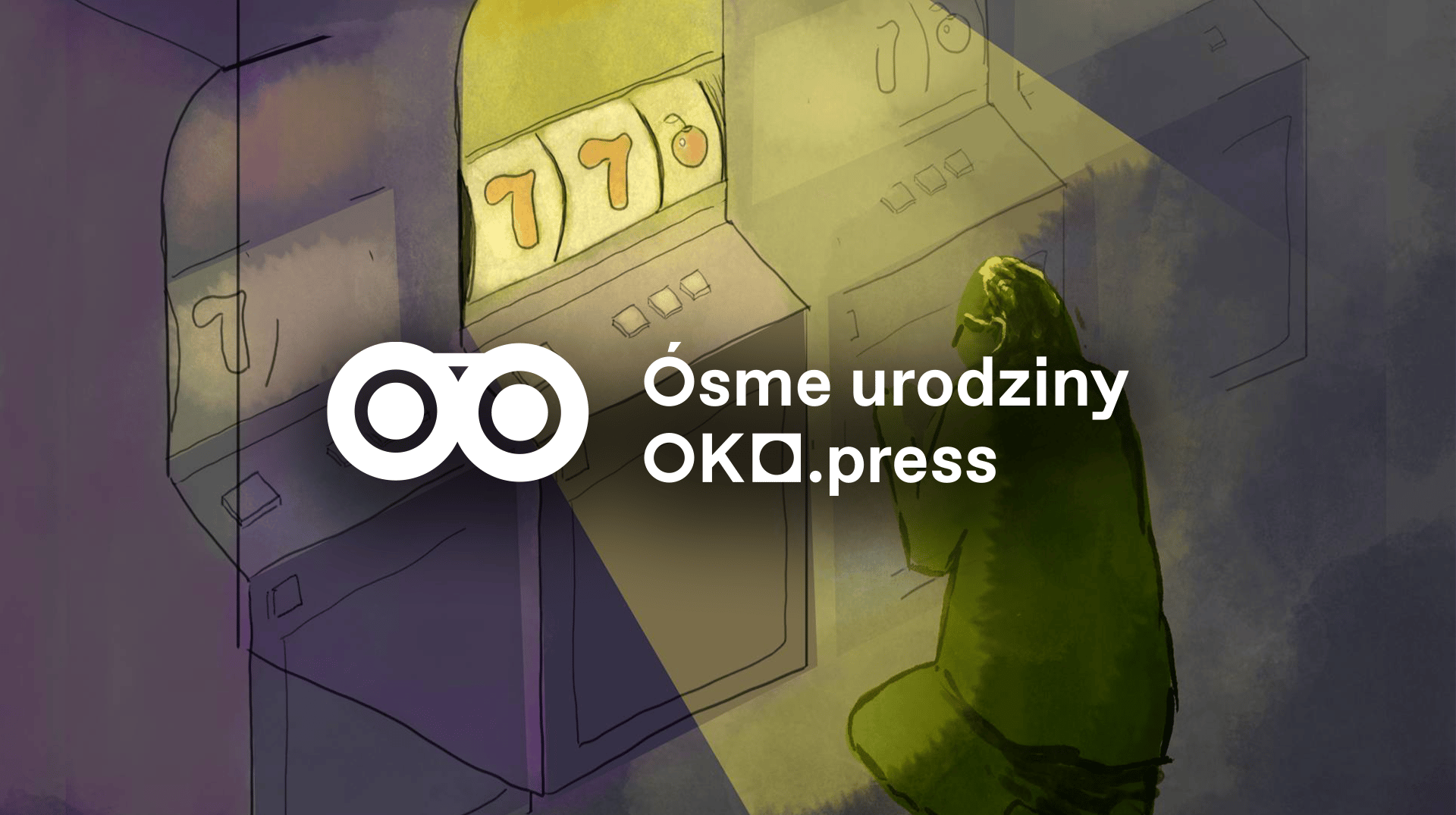 Ostatni podpis i zamek w drzwiach obok lady brzęczy. Za nimi panuje półmrok, szyby oklejone są ciemną folią. Kolorowo rozświetlone automaty stoją pod ścianą. Na jednym z foteli siedzi mężczyzna, zapatrzony w ekran naciska guzik, wpuszcza liczby w ruch. Tym razem nic. Naciska kolejny raz. Znów nic. – Lepiej w zeszłym miesiącu szło – klnie pod nosem, wychodzi doładować kartę. Wraca, siada, znów klika. I znów nic.
