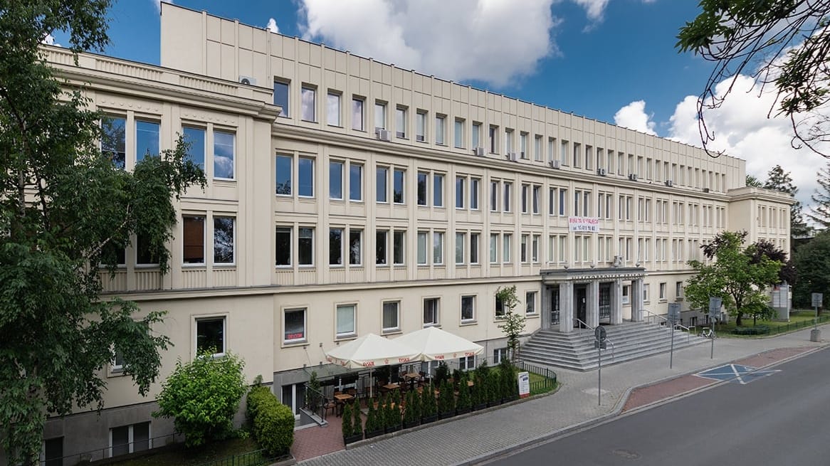 Siedziba biura ulokowana w pobliżu Błoń, zaprojektowana przez Józefa Gołąba, prezentowała uproszczoną wersję socrealizmu. W pierwotnej wersji budynek zdobiła attyka nawiązująca do historycznych realizacji Krakowa i socrealistycznych w Hucie. Budowę biurowca rozpoczęto w 1949 roku, tym samym roku, co budowę nowego miasta. Trwała sześć lat. Znaczna kubatura budynku (ponad trzy tysiące metrów powierzchni użytkowej) została jednak dopasowana wysokością do skali okolicznych willi Półwsia Zwierzynieckiego. Horyzontalną bryłę obramiono niższymi symetrycznymi ryzalitami, a centralnie ulokowane schody prowadziły do umieszczonego w osi portalu wejściowego. Rytmy okien i dekoracji godziły monumentalizm i wyrafinowanie. Całości kompozycji dopełniał elegancki szyld nad wejściowym portykiem.