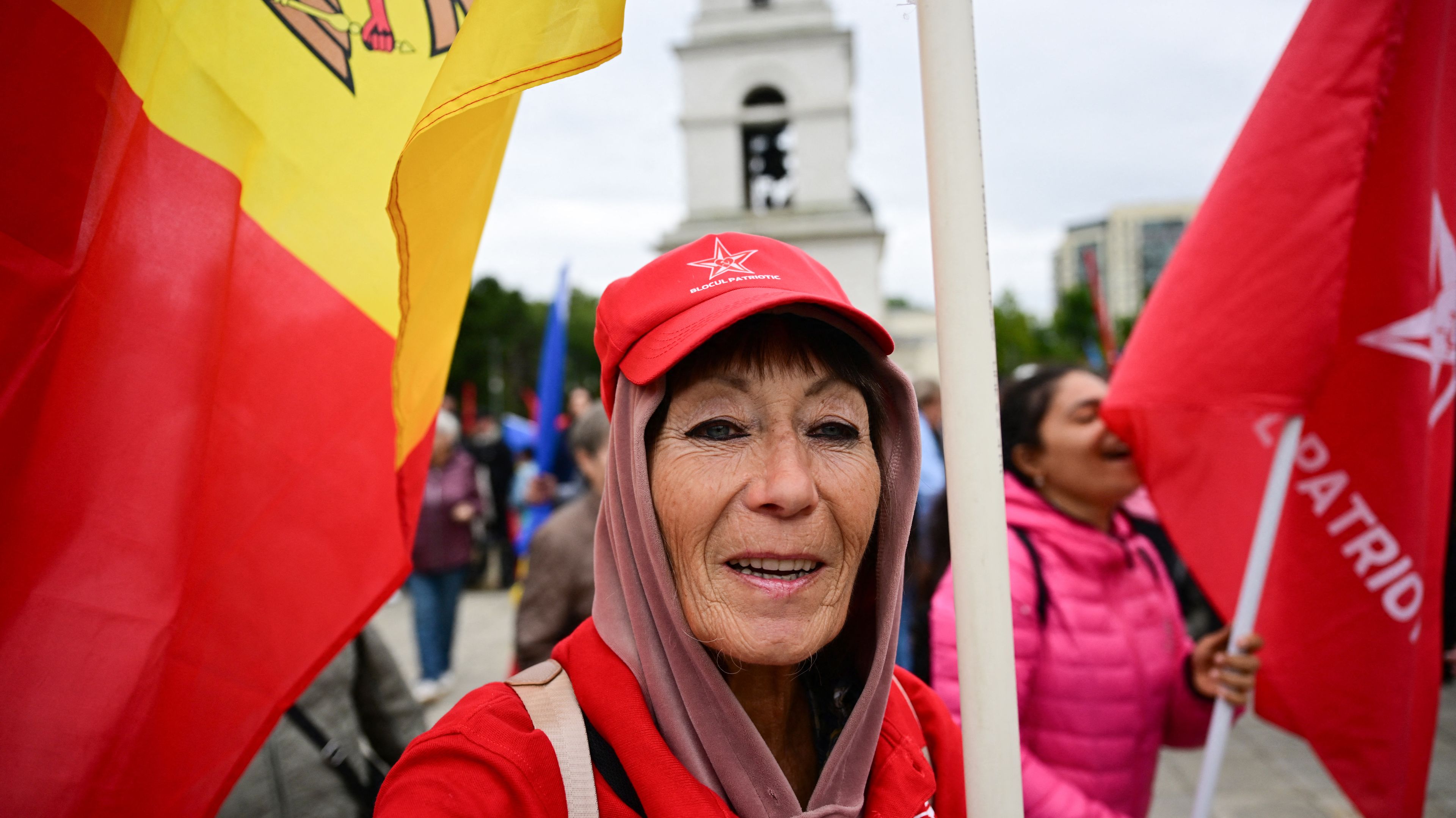 Na zdjęciu: Zwolenniczka Bloku Patriotycznego (BEP) na wiecu w Kiszyniowie 25 września 2025. (Fot. Daniel MIHAILESCU/AFP)