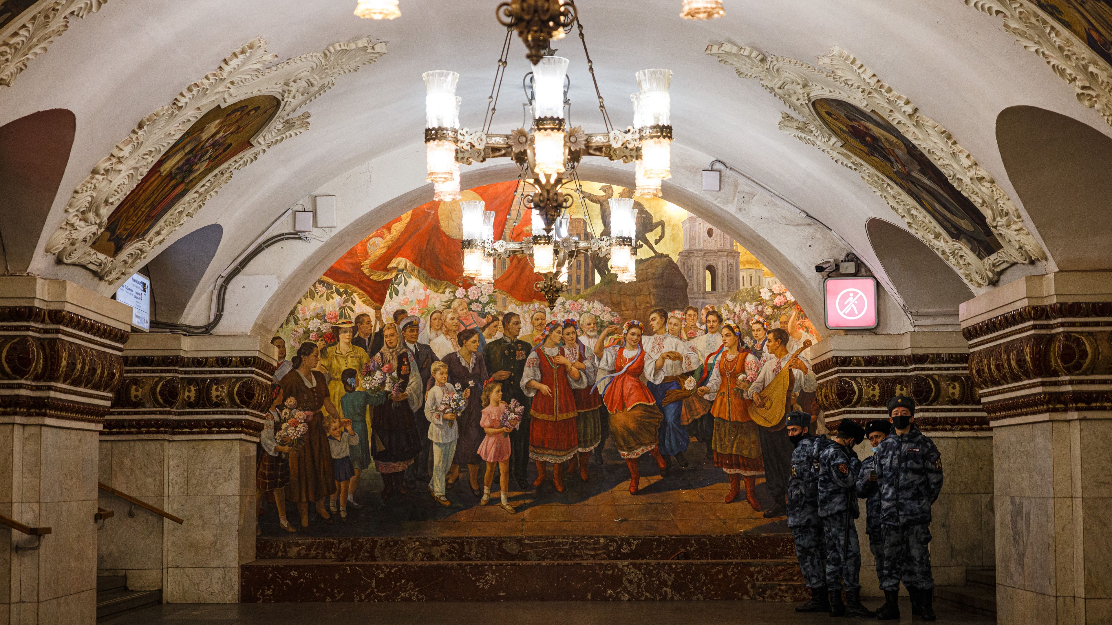 Od przeszło siedemdziesięciu lat bogata ikonografia węzła Stacja Kijowska nie uległa zmianie. Tak jak w latach pięćdziesiątych ubiegłego wieku również dziś ściany peronu i hali na Linii Arbacko-Pokrowskiej pokryte są mozaikami przedstawiającym sceny z życia ludu ukraińskiego. Złote, świetliste obrazy na stacji Kijowskiej uchodzą za jeden z najbardziej udanych copy-pastów z chrześcijańskiej ikonografii do propagandy sowieckiej. Wszystkie emanują obfitą, ciepłą aurą. Mają głębokie złote tło. Jak w dobrze namalowanych i oświetlonych ikonach, światło odbija się od obrazów w taki sposób, że to one wydają się jego źródłem. W symbolice ikony złoto oznacza pierwotne niestworzone światło wyrażające wszechmocnego Boga, jego chwałę i theosis, czyli przebóstwienie – udział człowieka w boskiej naturze, jedność z Bogiem.