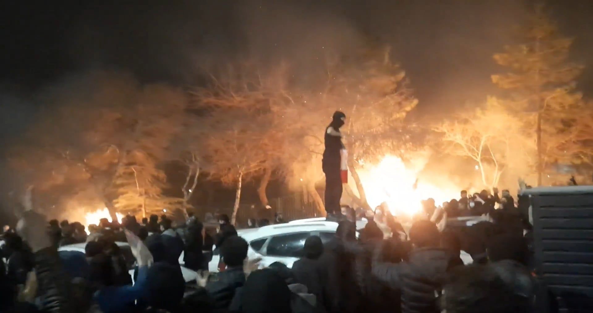 Nagrania z Teheranu, opublikowane w sobotę w mediach społecznościowych, pokazują tłumy maszerujące nocą, klaszczące i skandujące hasła. Tłum „nie ma końca ani początku”, jak mówi mężczyzna. Nagrania z północno-wschodniego miasta Meszhed pokazały dym buchający w nocne niebo z pożarów na ulicy, zamaskowanych protestujących i drogę usłaną gruzami, jak pokazało inne nagranie opublikowane w sobotę. Słychać było odgłosy eksplozji. Telewizja państwowa pokazała dziesiątki worków na zwłoki leżących na ziemi przed biurem koronera w Teheranie. Według doniesień medialnych zwłok ofiary to ofiary działań „uzbrojonych terrorystów”. Pokazano także nagrania bliskich osób zgromadzonych przed Centrum Medycyny Sądowej Kahrizak w Teheranie, oczekujących na identyfikację ciał – pisze Reuters.