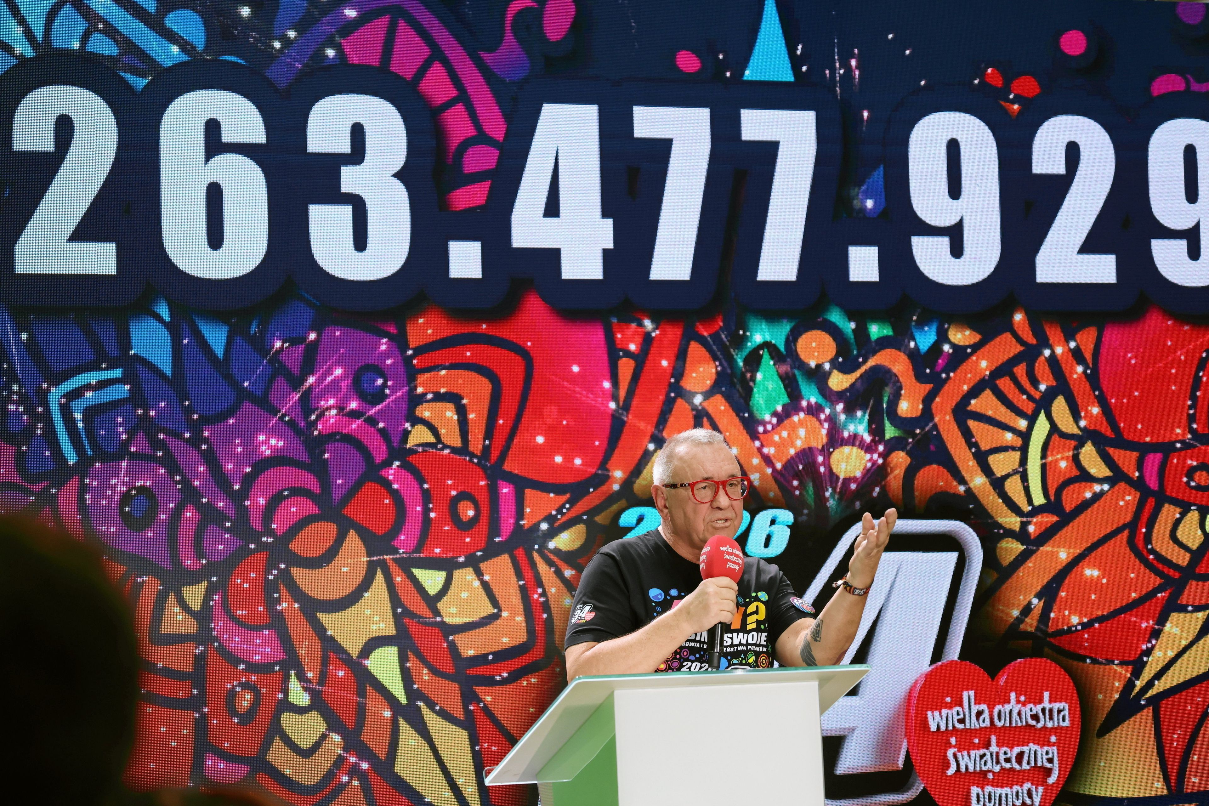 Jerzy Owsiak ogłosił w poniedziałek, że Wielkiej Orkiestrze Świątecznej Pomocy udało się w tym roku zebrać ponad 263 mln 477 tys. zł.