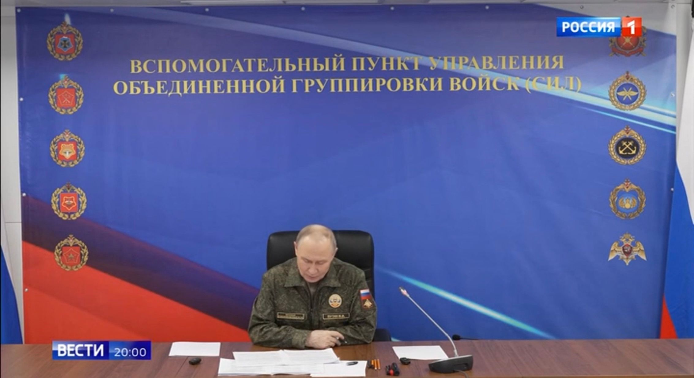 Propaganda Kremla w sposób bezprecedensowy przerwała 27 grudnia wieczorny dziennik, by przez ponad 20 minut sprawozdawać spotkanie ubranego w mundur Putina ze swoimi dowódcami w „punkcie dowodzenia” (na zdjęciu u góry).
