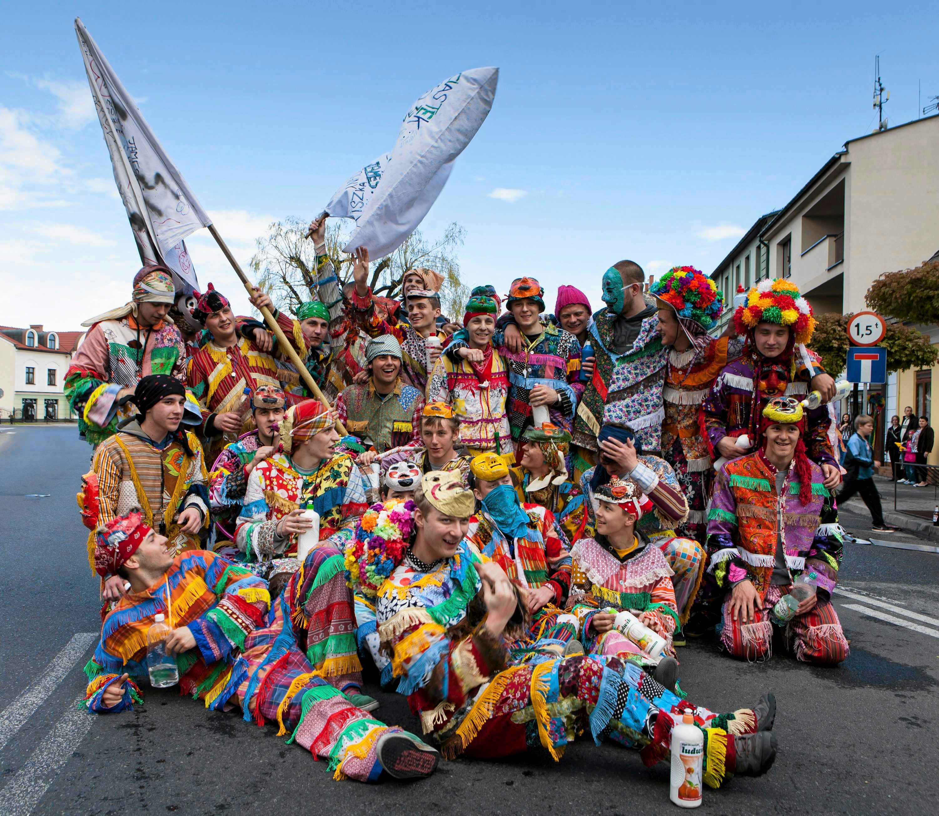 Na zdjęciu – Wilamowickie smiergusty (Dy wymysöjer Śmiergüśnika), czyli organizatorzy śmigusa wedle wilamowskiej tradycji. To obrzędowe grupy przebierańców, noszących „śmierguśnickie przebranie”. Uzywają strojów szytych ze skrawków i resztek zniszczonych strojów kobiecych, dających wielobarwny i pstrokaty efekt. Obrzęd ten po raz pierwszy opisany został w 1909 roku. Zdjęcie z 2014 r.