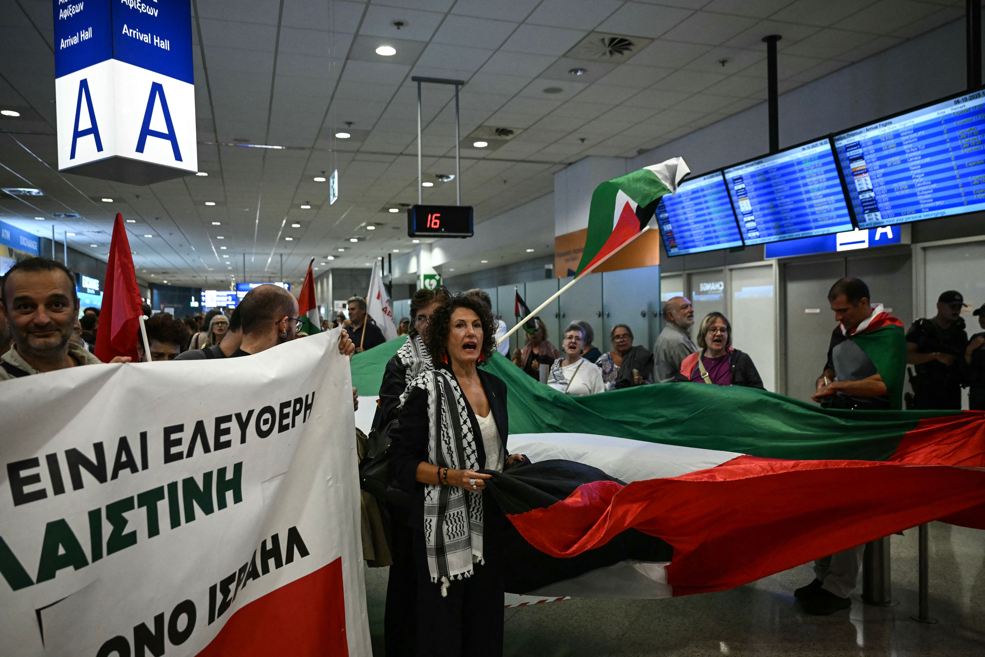 Kilka godzin wcześniej izraelskie Ministerstwo Spraw Zagranicznycy informowało, że 171 członków Flotylli, w tym Greta Thunberg, zostało dziś deportowanych z Izraela do Grecji i Słowacji. Izraelskie MSZ udostępniło zdjęcia kilku osób, w tym Thunberg, na telawiwskim lotnisku przed deportacją. Wszystkie mają na nich identyczne, szaro-białe ubrania. Izrael w oficjalnej komunikacji dalej nazywa członków inicjatywy „prowokatorami”, a samą flotyllę „akcją PR-ową”.