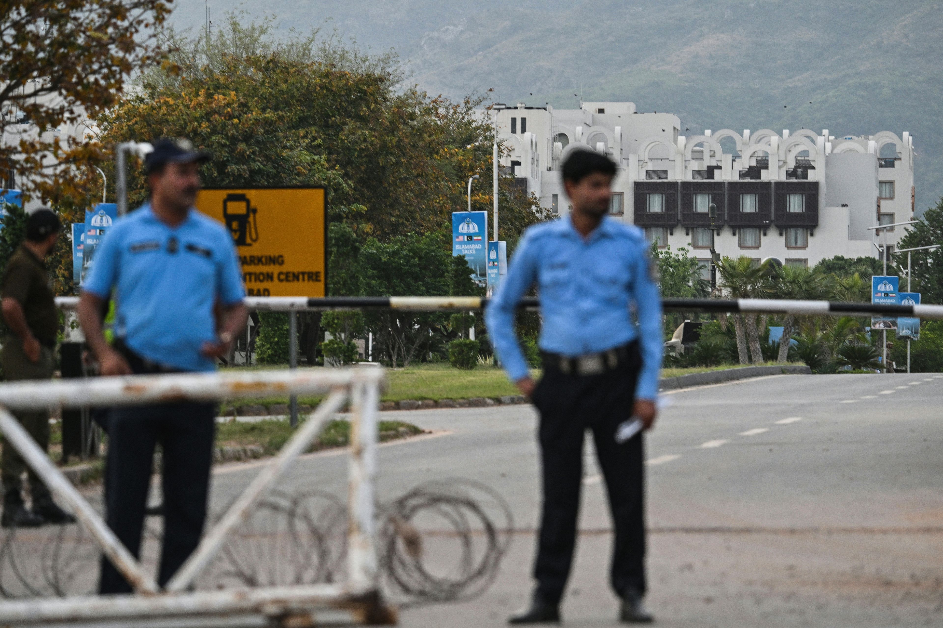 na zdjęciu: checkpoint w Islamabadzie w okolicy hotelu, gdzie odbyła się pierwsza runda rozmów