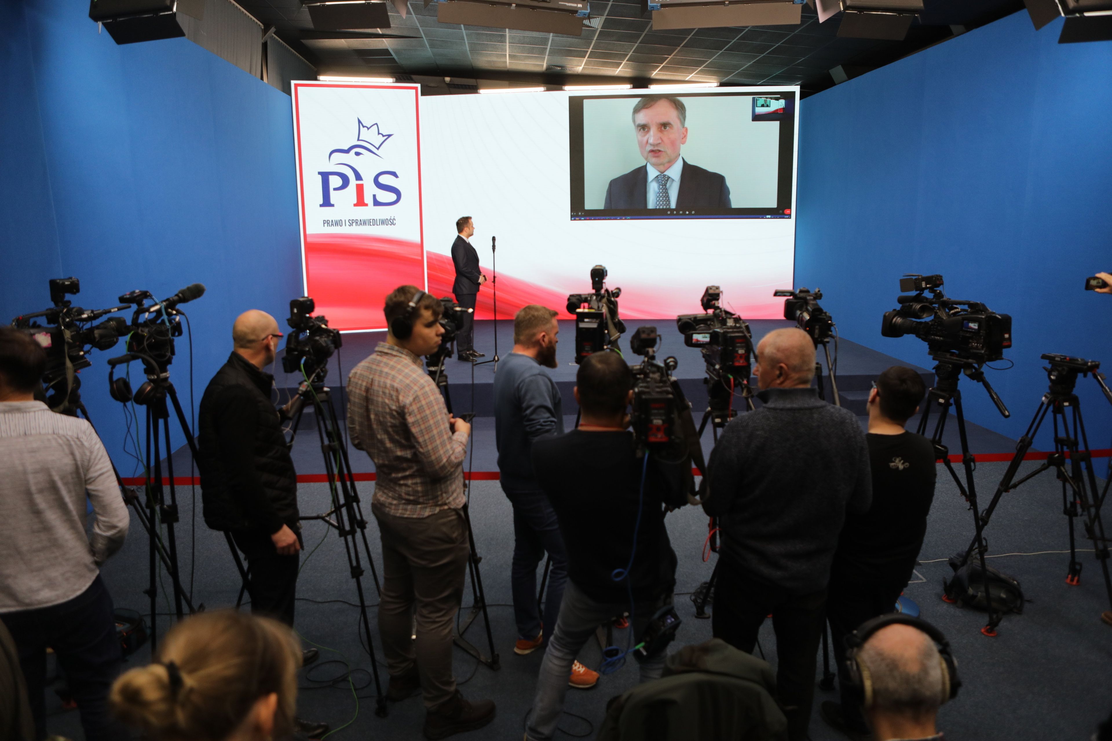 W piątek 5 grudnia przebywający na Węgrzech były minister sprawiedliwości w rządzie PiS Zbigniew Ziobro wystąpił zdalnie w siedzibie PiS. Do dziennikarzy i pracowników prawicowych mediów przemawiał z ekranu.