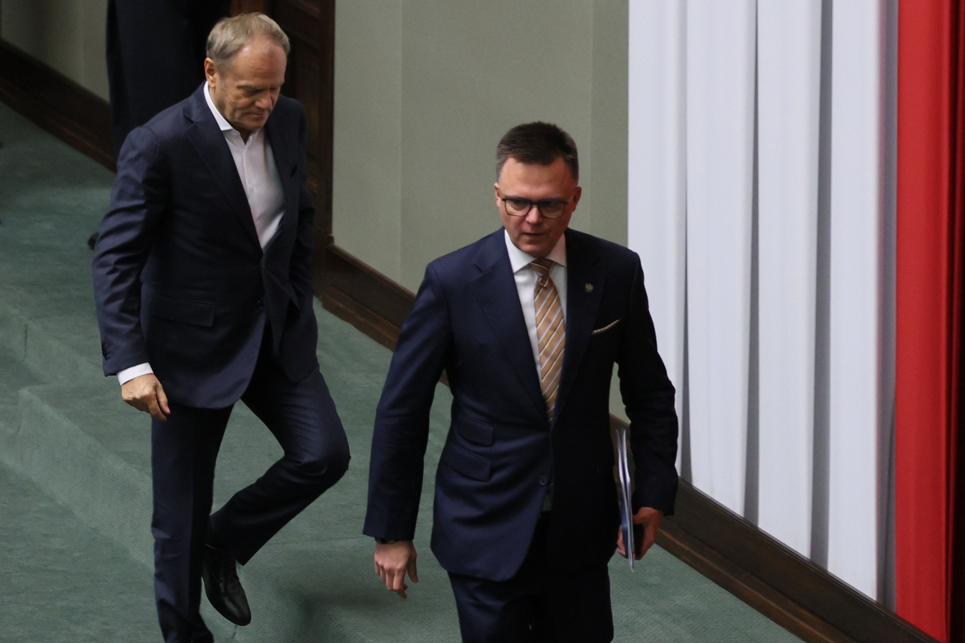 „Marszałek Hołownia nie stawia żadnych warunków wstępnych i, tak jak się zobowiązał w umowie, zrezygnuje na rzecz Włodzimierza Czarzastego” – powiedział w Sejmie premier Donald Tusk