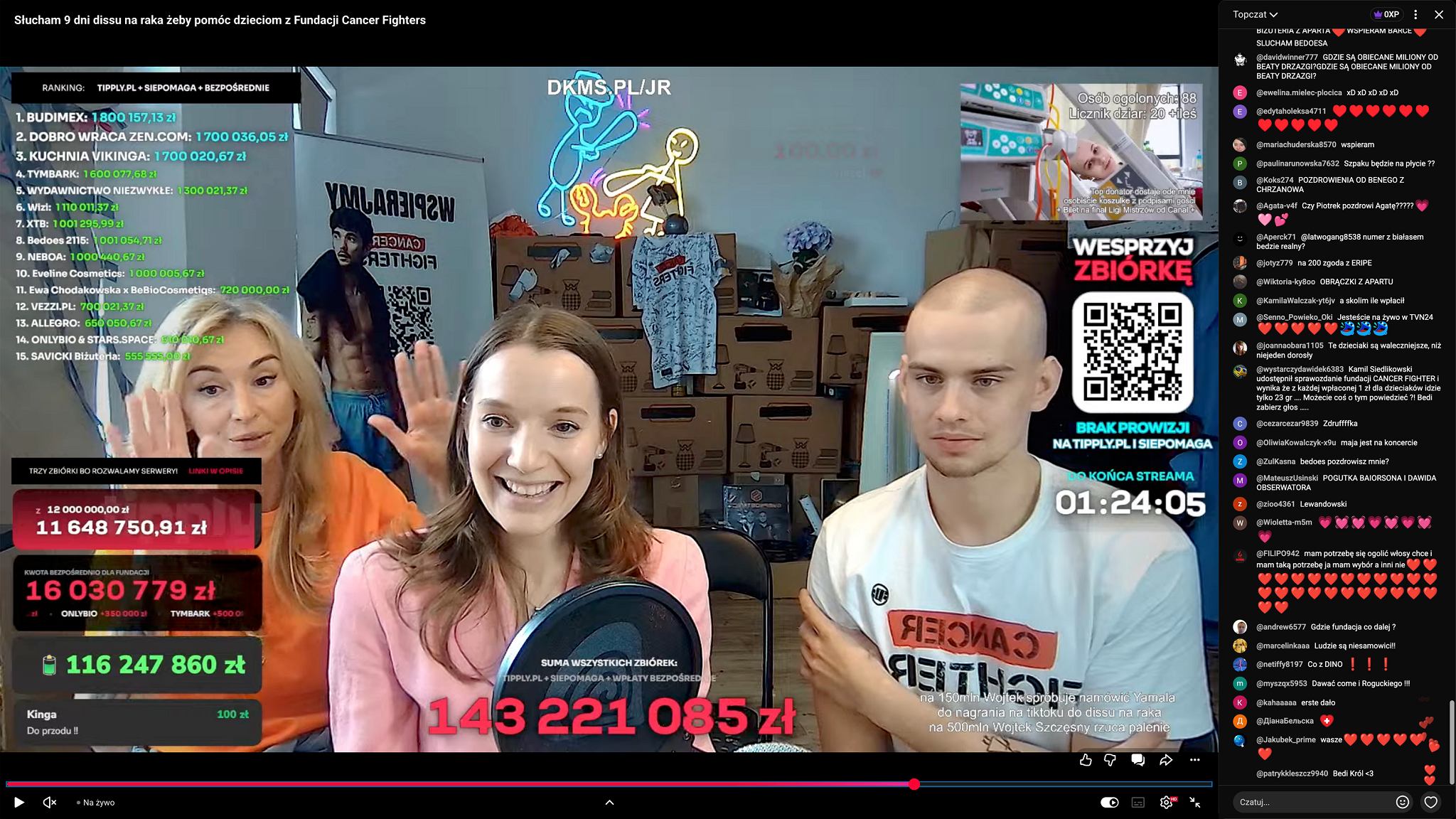 W niedzielę 26 kwietnia zakończył się charytatywny stream na YouTubie, który wywołał podobne poruszenie co Wielka Orkiestra Świątecznej Pomocy. Piotr Gawkowski, znany na Youtubie jako Łatwogang, ściągnął do swojego studia nagraniowego polskich celebrytów, którzy przez 10 dni zachęcali widzów do wpłacania pieniędzy na Fundację Cancer Fighters. Zebrano w sumie 251 mln złotych na onkologię dziecięcą. To zawrotna kwota jak na akcję charytatywną, szczególnie jeśli porównamy to z wynikami WOŚP. W 2026 roku, podczas 34. edycji wydarzenia, wolontariusze w terenie, a także przeróżne aukcje zebrały w sumie 263 mln zł. Jerzy Owsiak, szef WOŚP, pogratulował Łatwogangowi sukcesu. „Mówiłem, że będzie sto. A będzie jeszcze więcej niż 100 milionów. Coś niesamowitego. To zwariowana, Szalona zbiórka. Myślę, że ministra zdrowia podziękuję tej ekipę zwariowanych ludzi, że to zrobili” – mówił Owsiak. Dodał, że WOŚP może uczyć się od młodych ludzi, jak lepiej organizować podobne wydarzenia.