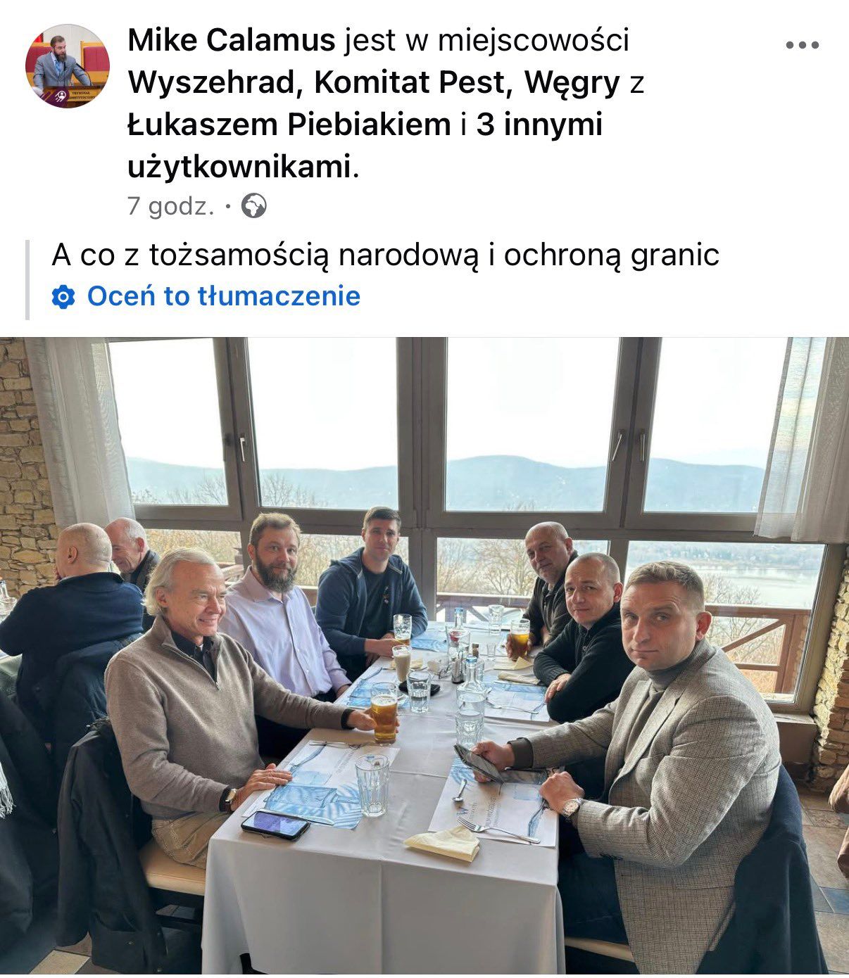 Na zdjęciu z nimi widać też byłego prezydenta Czech Vaclava Klausa. Zaś na kolejnym zdjęciu jest z nimi polityk powiązany z skrajną niemiecką AfD Volker Schnurrbusch z Parlamentu Europejskiego. Czubik z Piebiakiem siedzą z nim, wraz z Bąkiewiczem, przy jednym stole.