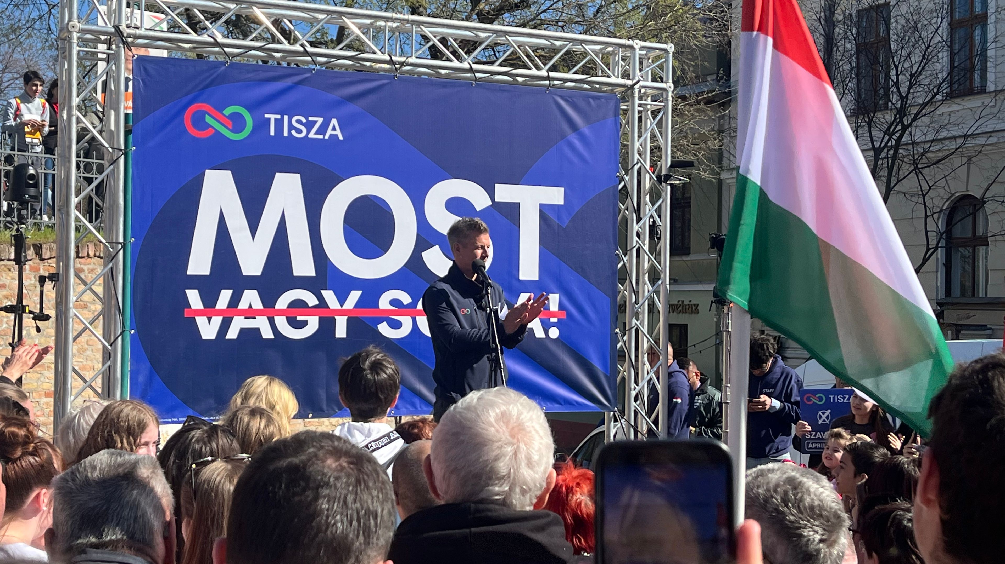 „Zrobili z Węgier najbiedniejszy i najbardziej skorumpowany kraj Europy” – mówi chwilę później Magyar. „Ta władza wydaje miliony z naszych podatków na podłą, kłamliwą propagandę, zamiast ratować węgierską służbę zdrowia, zamiast tworzyć miejsca pracy na węgierskiej prowincji, aby nie trzeba było godzinami dojeżdżać do pracy”.