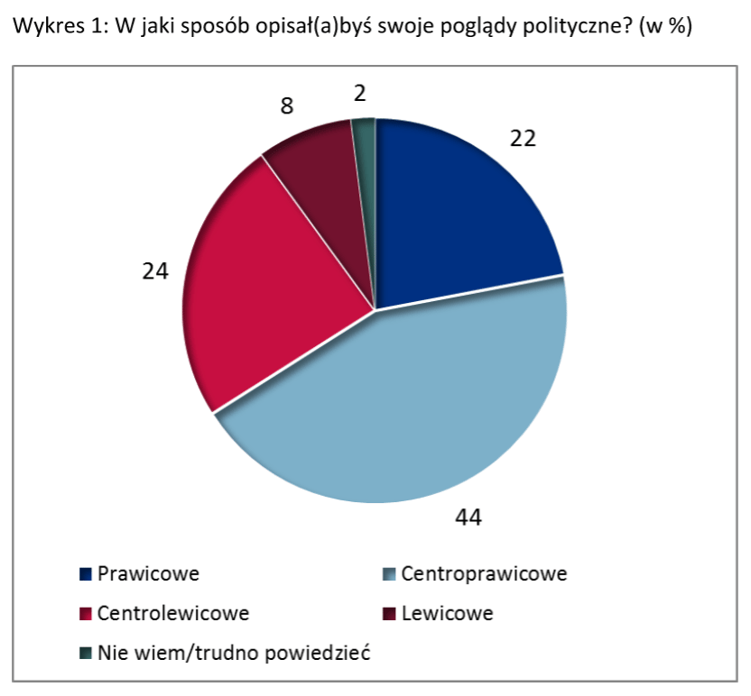 Młodzi poproszeni o ocenę swoich poglądów na skali 0-5 ( gdzie 0-skrajnie lewicowe, 5-skrajnie prawicowe), na ogół wskazywali wartości bliskie środka skali (2 lub 3), a zatem centroprawicowe lub centrolewicowe.