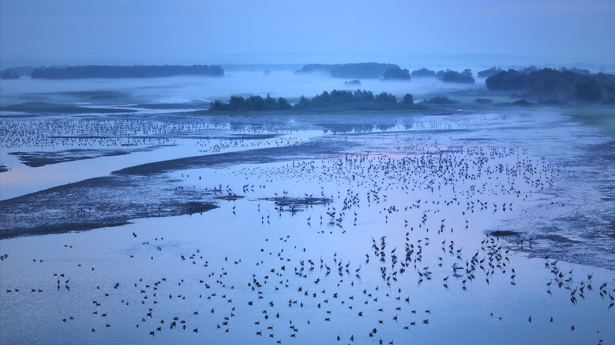 Rozlewisko powstało dzięki ruchom wód polodowcowych. Ptaki, jak wyjaśniał mi Chara, są tu bezpieczne, bo woda utrudnia drapieżnikom polowanie. Płycizna jest jednocześnie bezpieczną oazą i obfitą stołówką.