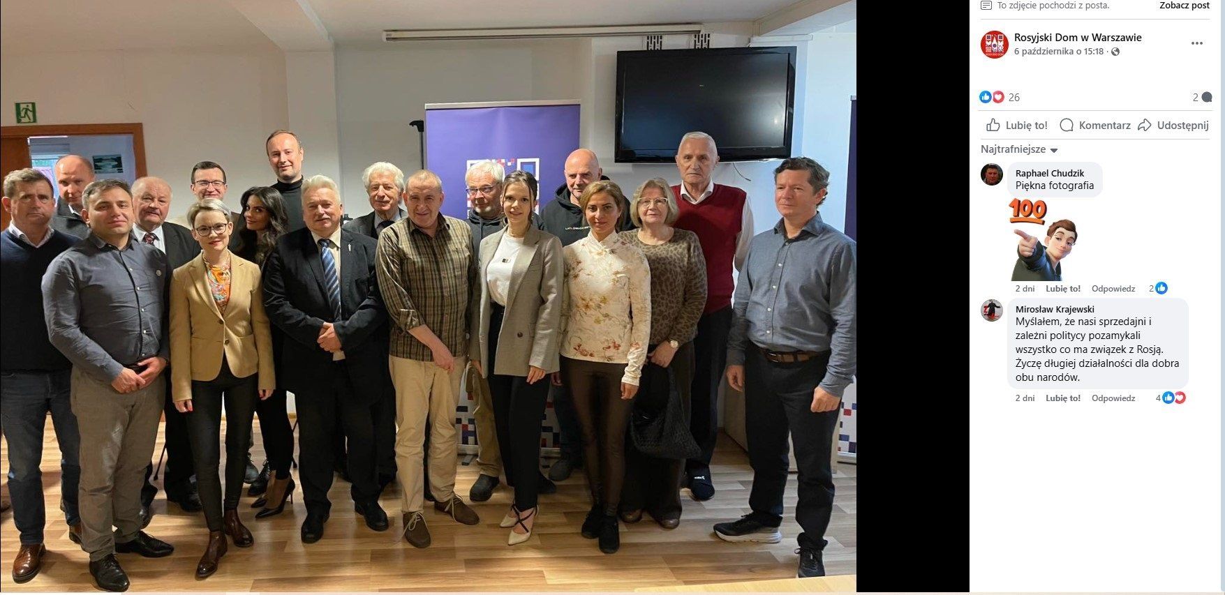 Rosyjski Dom prężnie działa też w mediach społecznościowych. We wpisach przypomina o „Polakach, którzy zostali bohaterami Związku Radzieckiego”. Zaprasza do obejrzenia filmu Sputnika (jeszcze jedno rosyjskie medium, objęte unijnymi sankcjami) o tym, jak Rosja „od dawien dawna radziła sobie z zachodnim naciskiem”. Ten film to „historia prób osłabienia Rosji przez nieprzyjazne kraje”.