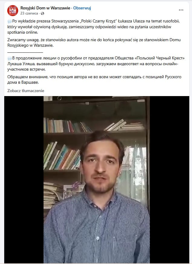 12 czerwca, czyli w rosyjskie święto państwowe, wykład „Rusofobia w Polsce” wygłosił w Rosyjskim Domu Polak, Łukasz Uliasz.