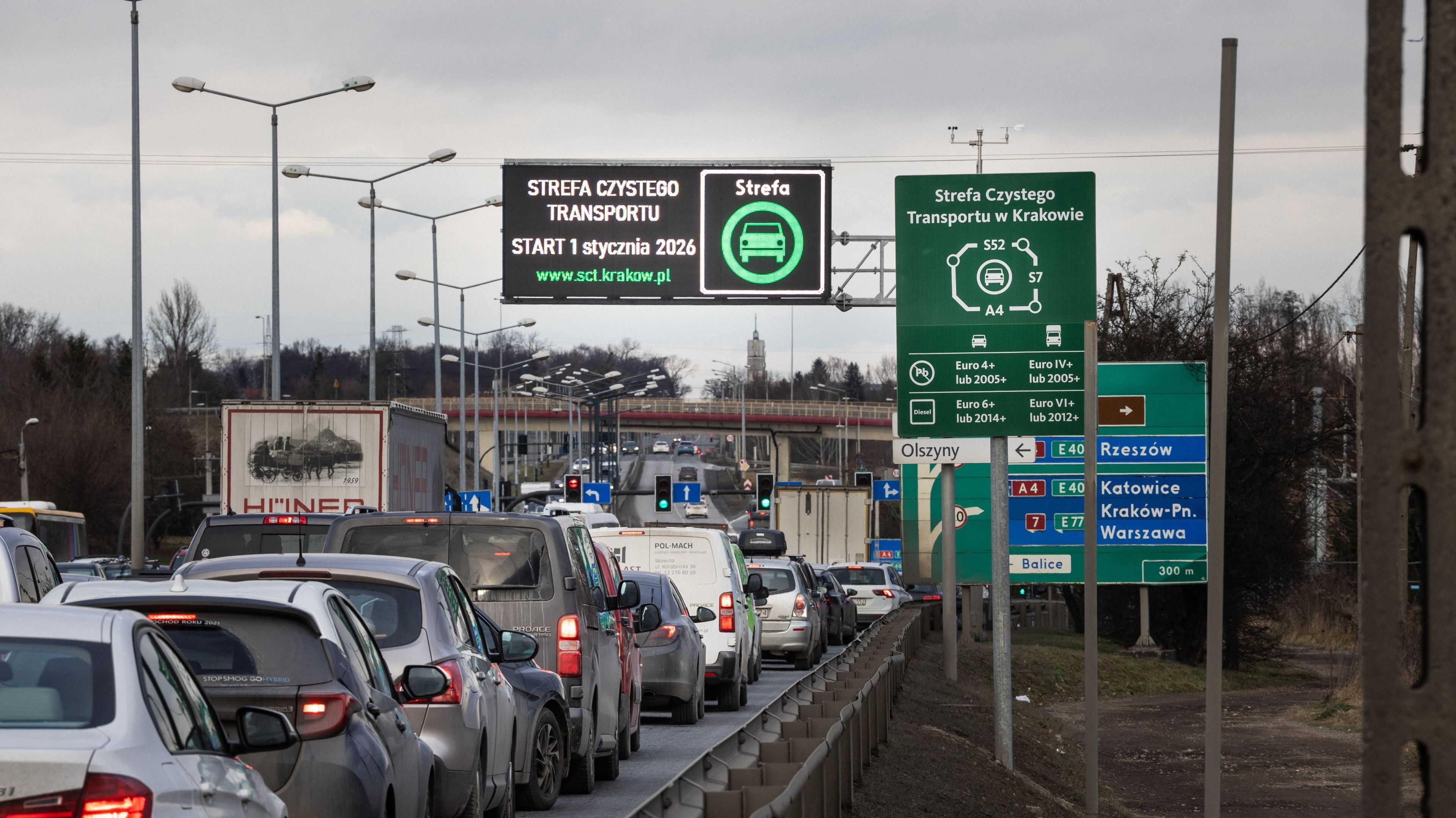 To efekt wprowadzenia łagodnej w swoich założeniach, choć zarazem dużej SCT (obejmuje 60 proc. powierzchni miasta). Uchwała o jej wprowadzeniu została przegłosowana w czerwcu 2025, a obowiązuje od pierwszego stycznia. Strefa w praktyce usuwa z całego obszaru miasta najstarsze diesle wjeżdżające z zewnątrz, chyba że zapłacą za wjazd. Dla mieszkańców – zameldowanych choćby czasowo i płacących podatki w Krakowie – na razie nie zmienia się nic. Jeśli ich auto nie spełnia wymogów, mogą zarejestrować swój pojazd w miejskim systemie i dalej nim jeździć.