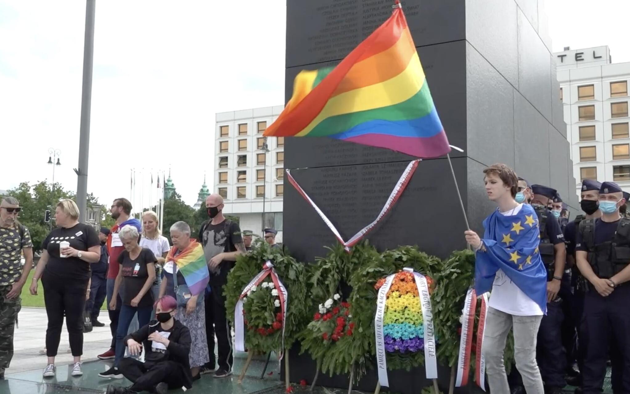 Cztery godziny walki na wieńce. Prezes Kaczyński złożył jeden, a obywatele dziesięć, w tym tęczowy