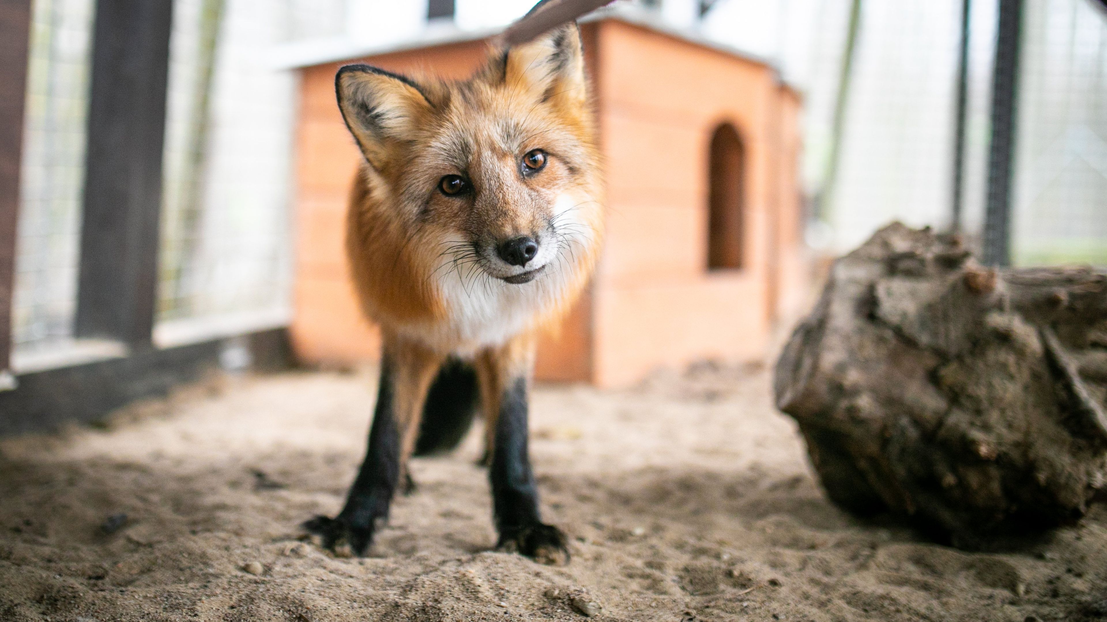 Na zdjęciu: Lis uratowany podczas interwencji na fermie w Durzynie koło Krotoszyna, który znalazł dom w Ośrodku Okresowej Rehabilitacji Zwierząt w Jelonkach. Fot. Andrew Skowron/Otwarte Klatki