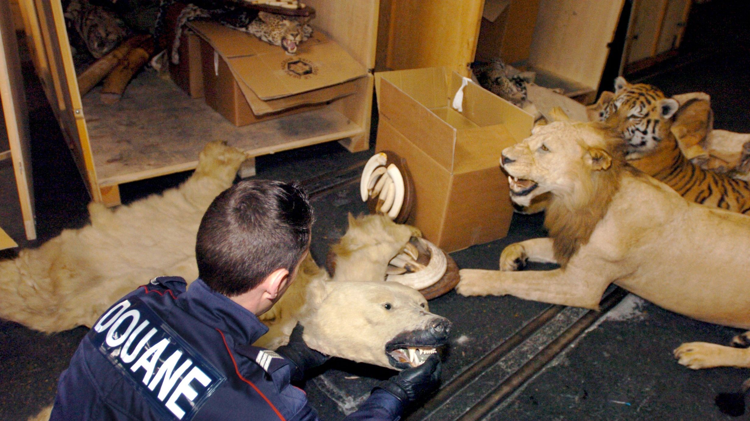 Na zdjęciu: akcja francuskiej służby celnej, która w 2008 roku przejęła 215 trofeów myśliwskich zwierząt chronionych o łącznej wartości prawie 133 000 euro. Fot. Marc Bondot/Douane Francaise/AFP.