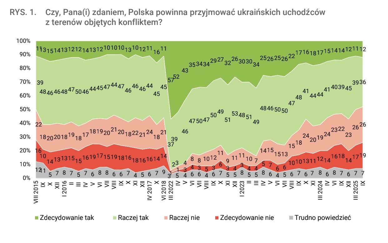 Donald Tusk jednocześnie stwierdził, że rosną w Polsce antyukraińskie postawy, co potwierdzają sondaże (np. CBOS – zobacz wykres) i znalazł dla nich usprawiedliwienie w postaci „dużych ciężarów”, które takie sentymenty ze „zrozumiałych względów” kształtują.