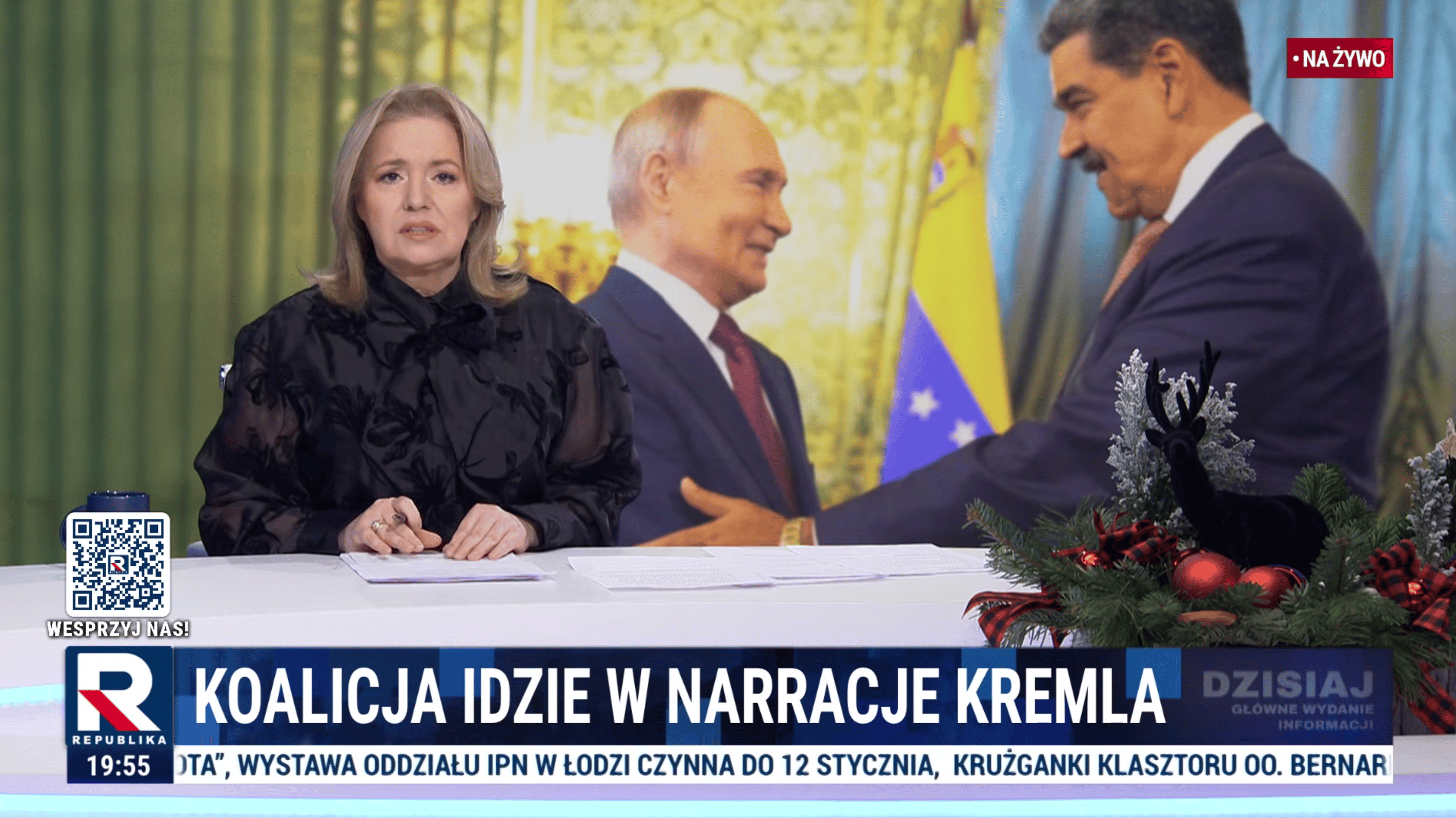 Telewizja Republika tradycyjnie nie zaprząta głów swoich widzów jakimiś wątpliwościami, szarościami, skomplikowanym obrazem świata. Działanie Trumpa w Wenezueli to po prostu kolejne Wielkie Osiągnięcie Wielkiego Lidera.