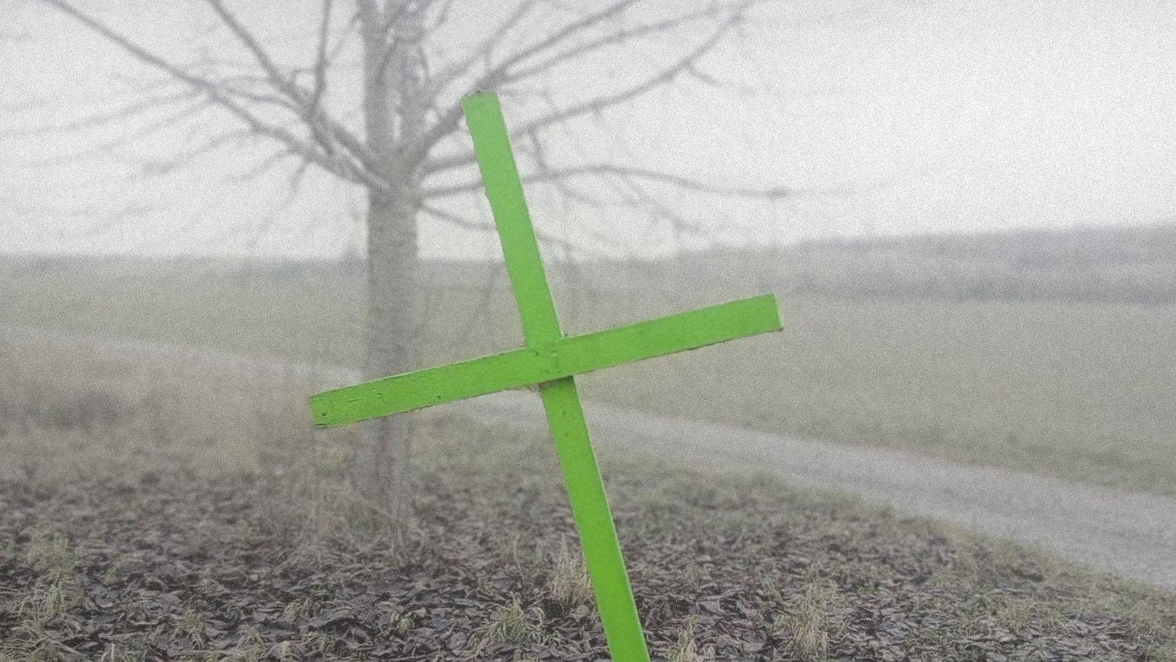 – Czemu postawił pan zielony krzyż na polu? – pytam mężczyznę, który pali papierosa na poboczu drogi oparty o wielkie jak młyńskie koło traktora. A on wzrusza ramionami i mruczy niewyraźnie: „Proszę spytać Williego”.