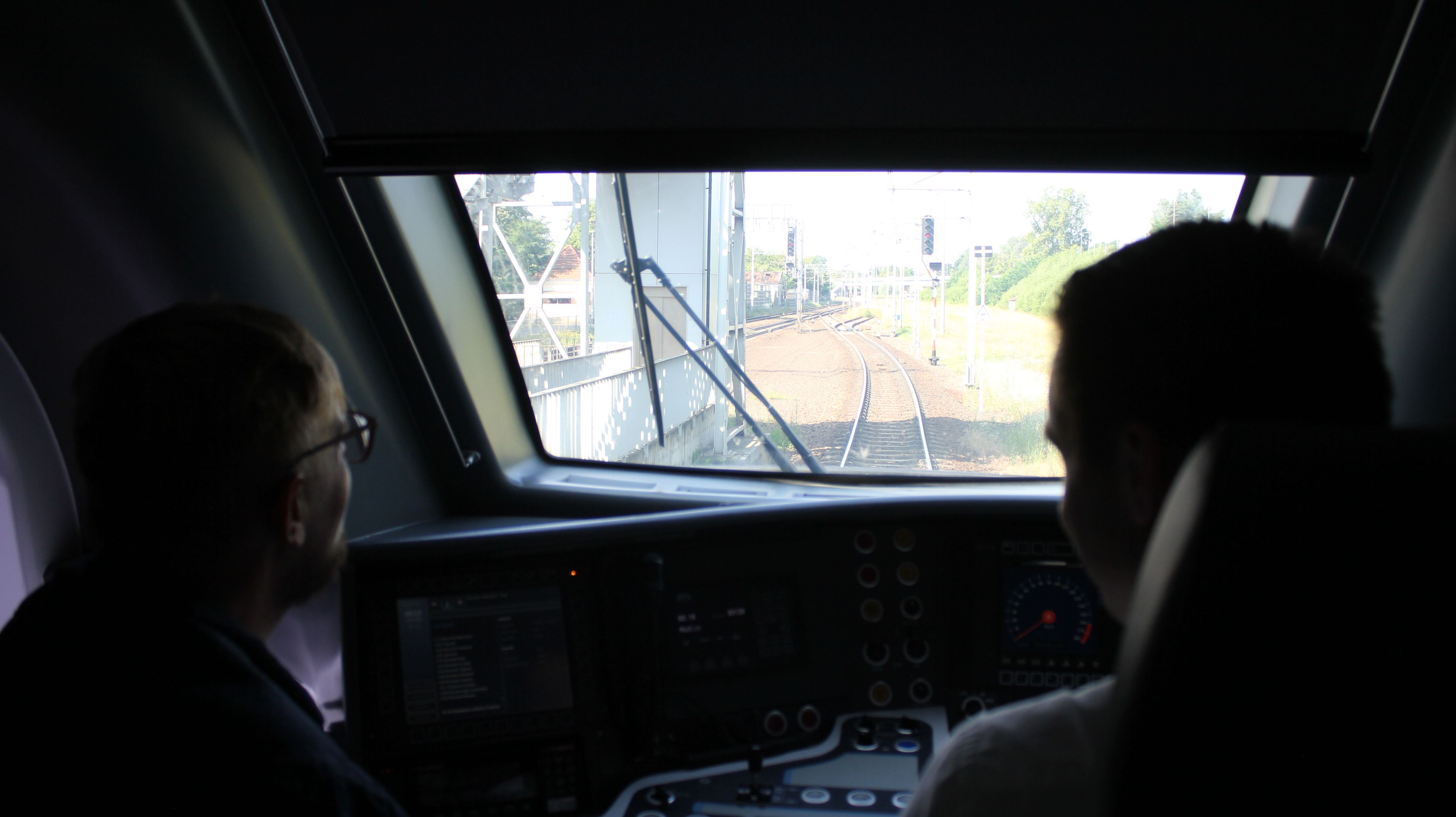 O godz. 05:28 wyprowadziłem pociąg ze stacji postojowej na stację Warszawa Zachodnia. Przede mną w kabinie dwa ekrany diagnostyczne i radiotelefon. Po lewej stronie mam nastawnik jazdy i hamulca elektropneumatycznego. Przed samym odjazdem musiałem nagrzać pociąg. Sprawdziłem kabiny maszynisty. Z rewidentem taboru zrobiliśmy próbę hamulca. Rewident wypisał kartę, podpisałem i byłem gotowy do drogi. Była 05:34.
